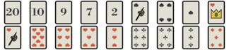 | Court cards | a marriage (king and queen from the same suit) | 10 |
